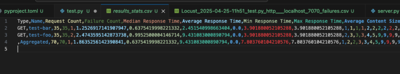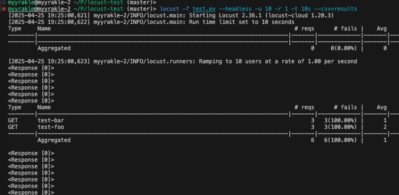 locust -f test.py --headless -u 10 -r 1 -t 10s --csv=results