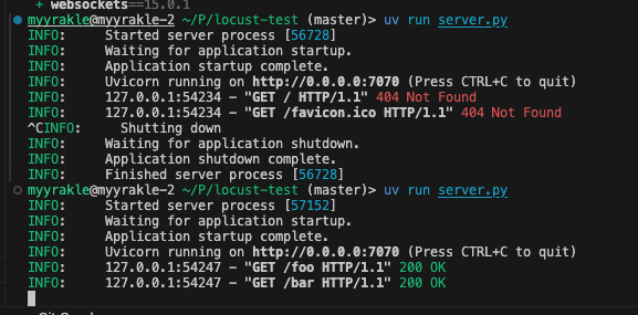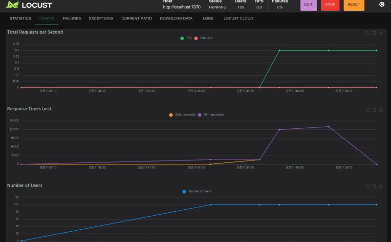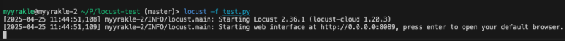 locust cli로 테스트코드를 실행하면