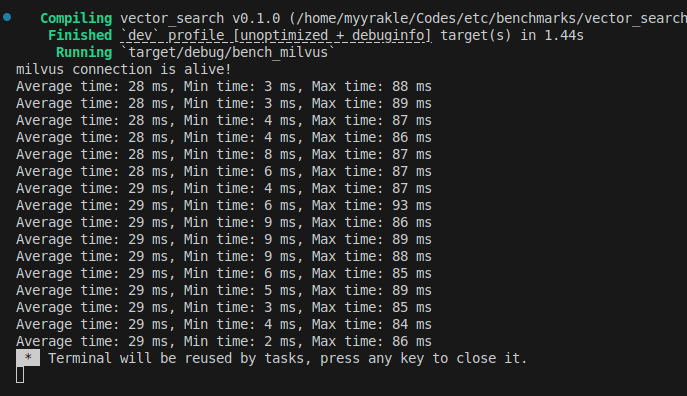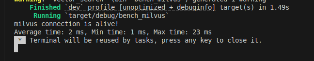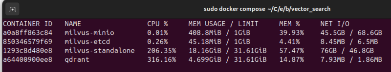 max 레이턴시는 별 차이가 없었지만, 평균 레이턴시는 milvus가 더 좋았다.