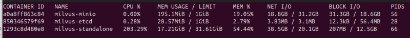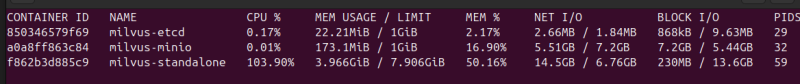 공통적으로 cpu 1개, 메모리 8기가 정도만 주고 돌려봤었고, milvus도 그렇게 해보려고 했다.