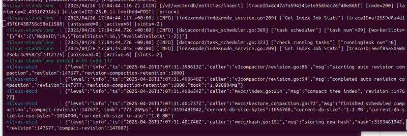 그냥 데이터 넣는건 pgvector, elasticsearch, qdrant 등 다른 DB들도 좀 오래 걸릴지언정 잘 감당했던 작업이라서, 이것도 별 문제가 없을줄 알았다.