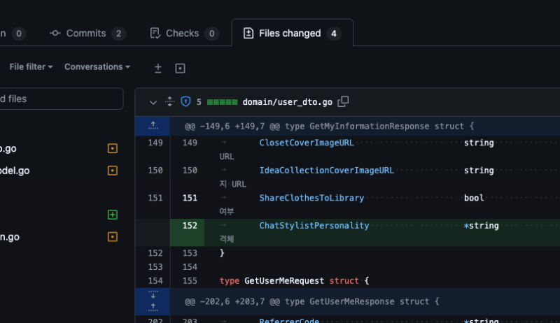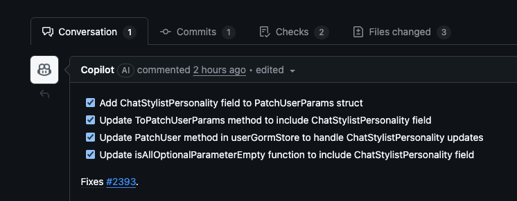 이상한짓 안했는지 변경내역 확인하고, 정정할게 있으면 @copilot으로 답변 달면 된다. 그럼 읽어서 처리한다.