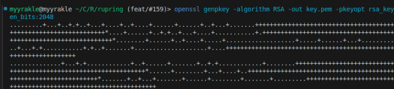 openssl genpkey -algorithm RSA -out key.pem -pkeyopt rsa_keygen_bits:2048
