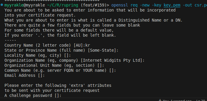 openssl req -new -key key.pem -out csr.pem