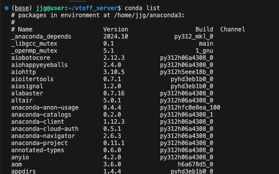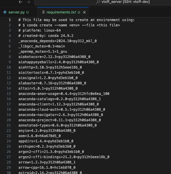 사실 그래서 가장 호환이 잘 되는 방법은, conda 컨텍스트 들어가서 pip3 freeze로 종속성을 뽑는 것이다.