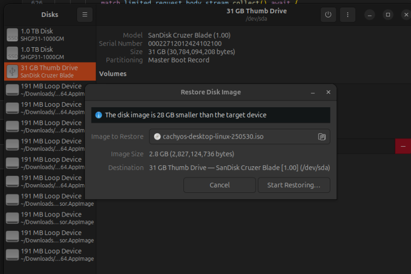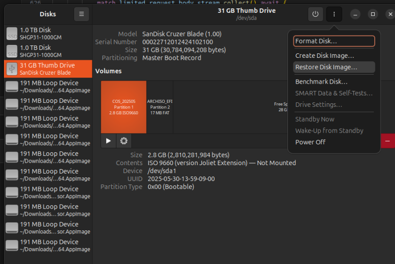 gnome 환경이라면 gnome-disk-utility라는 GUI 도구를 사용해서 간편하게 이미지를 구울 수 있다.