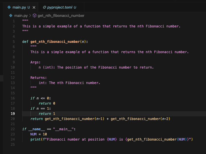 print(f"Fibonacci number at position {num} is {GetFibonacciNumber(num)}")