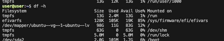 sudo lvs # LV(Logical Volume) 확인