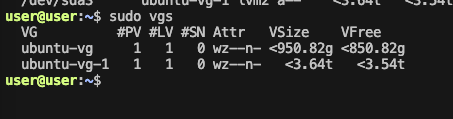 sudo vgs # VG(Volume Group) 확인