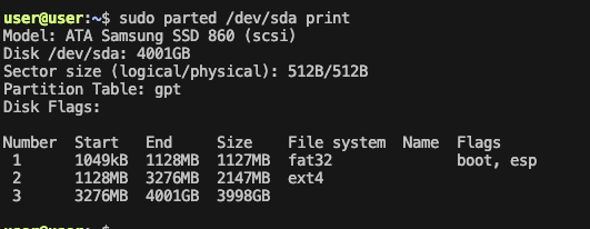 sudo parted /dev/sda print