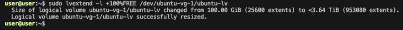 sudo lvextend -l +100%FREE /dev/ubuntu-vg-1/ubuntu-lv