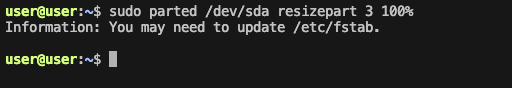 sudo parted /dev/sda resizepart 3 100%