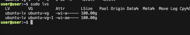 sudo lvs # LV(Logical Volume) 확인