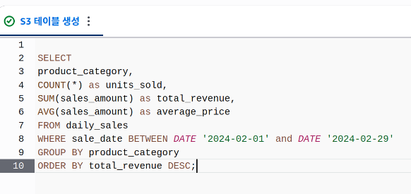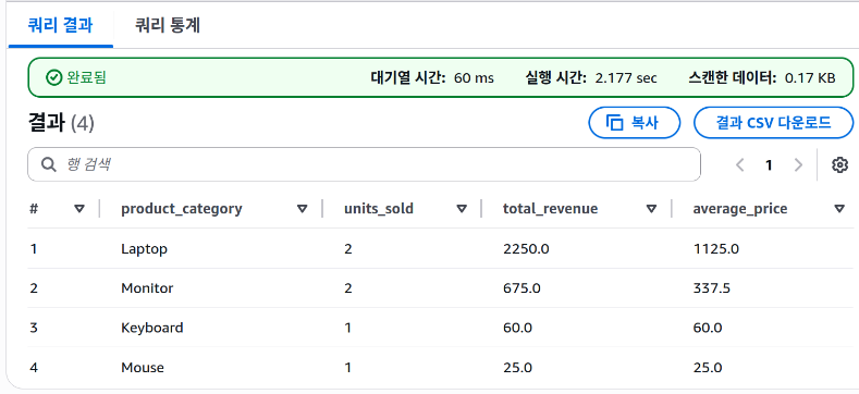 ๊ทธ๋ฆฌ๊ณ Athena ์ฝ์์์ ๋ฐ๋ก ๋ฐ์ดํฐ๋ฅผ ๋ฃ์ด์ ํ ์คํธ๋ฅผ ํด๋ณผ ์๋ ์๋ค.