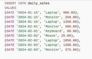 INSERT INTO daily_sales