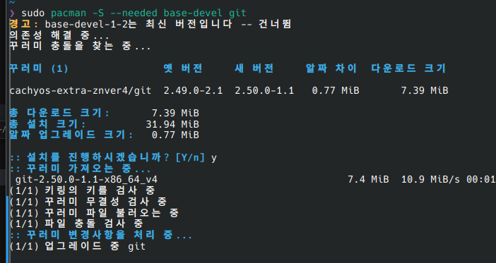 sudo pacman -S --needed base-devel git
