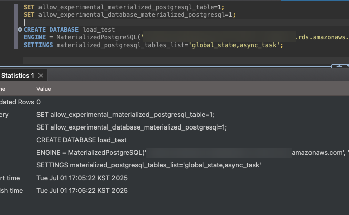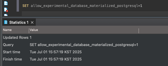 Database๋ก ๋ง๋ค ๋๋ Table์ ์ง์ ๋ง๋ค ๋์ ๋ค๋ฅด๊ฒ, MaterializedPostgreSQL ์์ง ํ