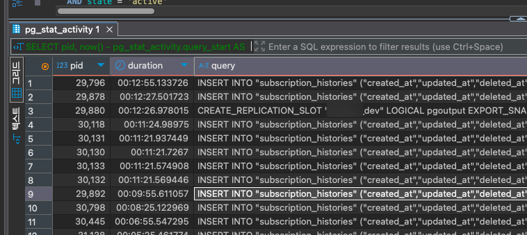 [PostgreSQL] 장기 실행 쿼리 확인 & 중단