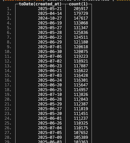 ReplacingMergeTree์ Optimize ๊ธฐ๋ฅ์ ์ฌ์ฉํด์ ๋ณํฉํ๊ฑฐ๋, ์ง์ ์ญ์ ํ๋ ๊ฒ๋ ๋ฐฉ๋ฒ์ด์ง๋ง ๊ทธ๊ฑด ๋ํ ํ