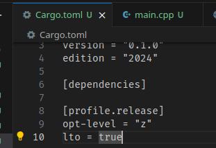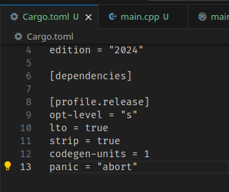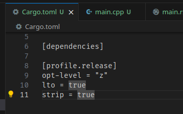 Rust는 바이너리 크기가 큰 편은 아니지만, 경우에 따라서는 상대적으로 크다고 느낄 수도 있다.