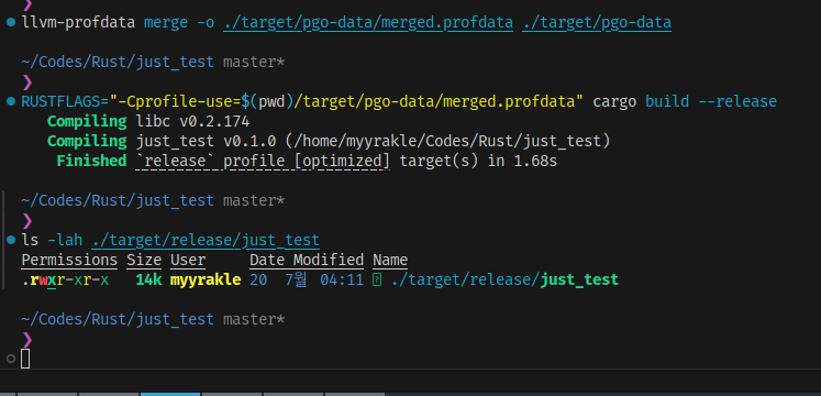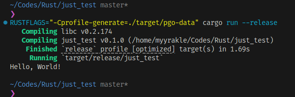 rustup component add llvm-tools-previewRUSTFLAGS="-Cprofile-generate=./target/pgo-data" cargo run --release