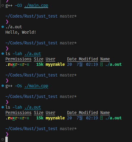 gcc/clang에서 O3와 Os의 크기가 차이가 없었던 것처럼.