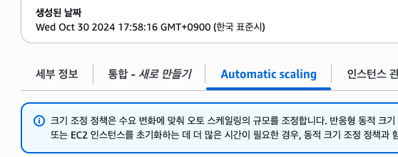 예약에 대한 제어는 오토스케일링 리소스 페이지, automatic scaling에서 확인할 수 있다.