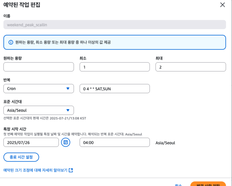 [AWS] Autoscalinggroup: 예약된 확장(scheduled scaling)