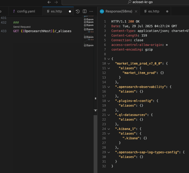 ์ด๊ฑด market_item_v7_0_0๋ผ๋ ์ธ๋ฑ์ค์ market_item์ด๋ผ๋ ๋ณ์นญ์ ๋ถ์ฌ์ค ๊ฒ์ด๋ค.