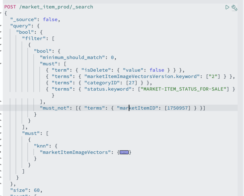 knn 절에 filter 절을 구겨넣으면 벡터 검색과 동시에 필터가 실행되도록 할 수 있다.