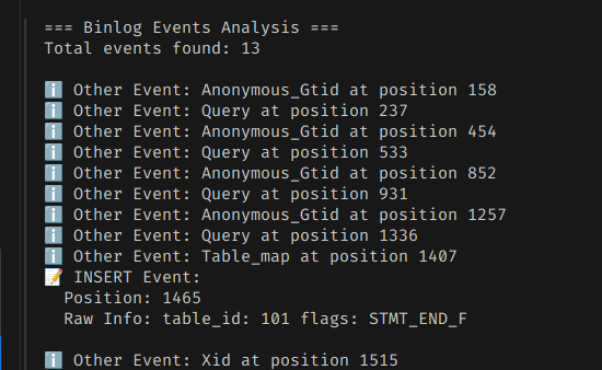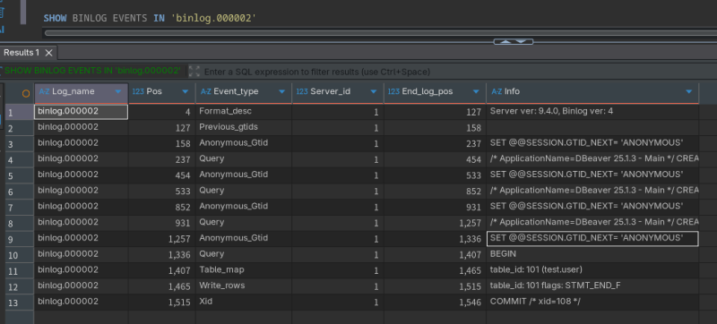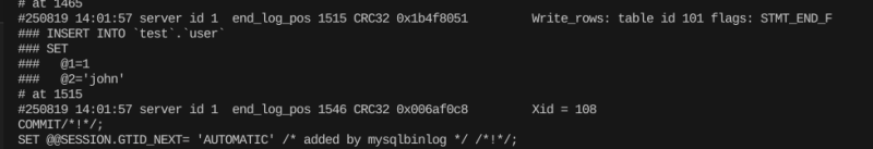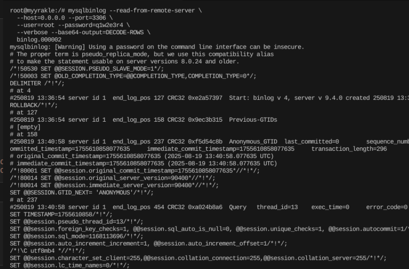 실제 로그 데이터를 까서 어떤걸 넣었는지 보려면 mysqlbinlog를 써야만 한다.