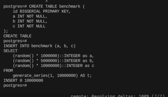 INSERT INTO benchmark (a, b, c)