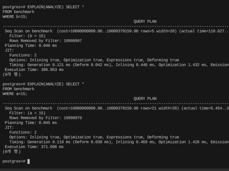 ๊ทธ๋ฆฌ๊ณ ์นด๋๋๋ฆฌํฐ๊ฐ ๋ฎ๊ณ ๋ฐ์ดํฐ์ ์ค๋ณต์ด ๋ง์ a, b ์ปฌ๋ผ์ ๋ํ ์กฐ๊ฑด์, ์ธ๋ฑ์ค๋ฅผ ์ ํ์ง ์๋๋ค.