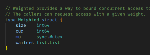 Golang์ ๋ฐ-ํ์ค ๊ตฌํ์ฒด(golang.org/x/sync/semaphore)๋ ์ ๊ทผ๋ฒ์ ๋ค๋ฅด์ง ์๋ค.