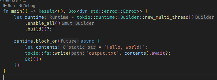 main μμμ νΈμΆλ ν¨μλ₯Ό μ λΆ async ν΄λ‘μ λ‘ λ¬Άκ³ , κ·Έκ±Έ async runtime λ΄μμ μ€ννλ κ²μ΄λ€.