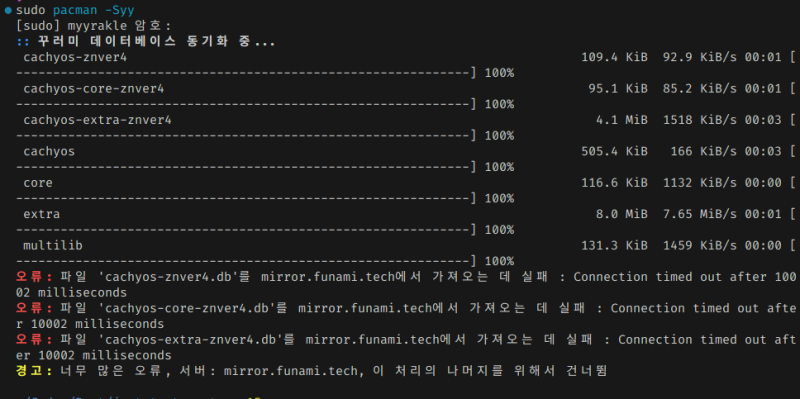 [Linux] Arch - pacman: ...에서 가져오는 데 실패...