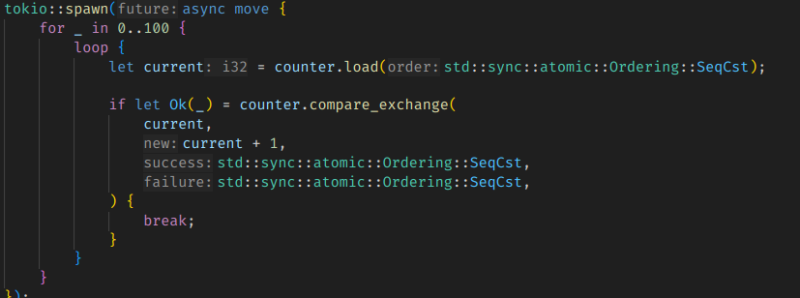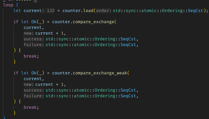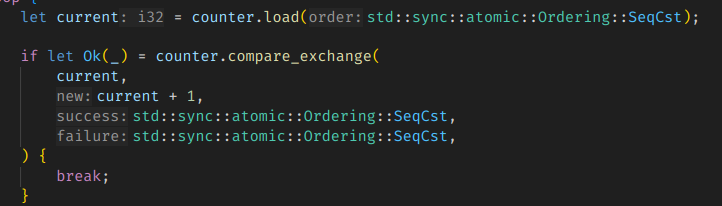 ์ด๋ฐ ์คํจ ๊ฐ๋ฅ์ฑ์ด ์๊ธฐ ๋๋ฌธ์, ๋๋ถ๋ถ์ CAS ๊ธฐ๋ฐ ์ฝ๋๋ ์คํจ-์ฌ์๋๋ฅผ ๋ฐ๋ณตํ๋ spin loop ๋ก์ง์ด ๋ค์ด๊ฐ๊ฒ ๋๋ค.