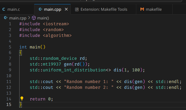 다음 C++ 코드는 하드웨어 노이즈 기반의 난수를 만든다.