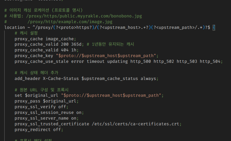 proxy_cache_valid 200 365d; # 1년동안 유지되는 캐시