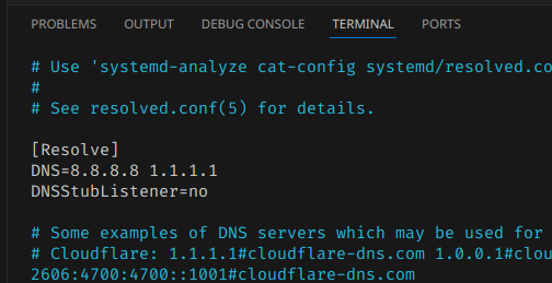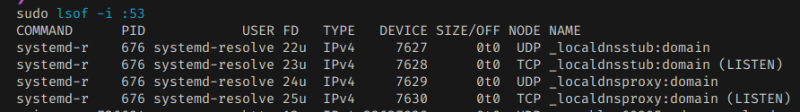 그리고 이 DNS 서버는 53포트를 사용하는데, 기존에 있던 시스템이 그 포트를 쓰고 있어서 그대로는 안될 수도 있다. 보통 systemd-resolved라는 녀석이 기본적으로 53포트를 점유하고 있다.