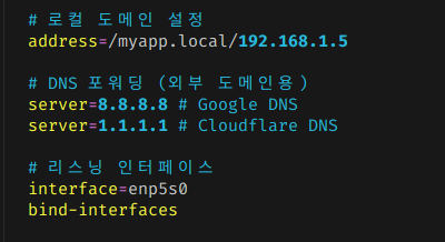 sudo vim /etc/dnsmasq.conf# 로컬 도메인 설정