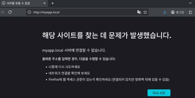 로컬 커스텀 도메인으로는 myapp.local을 설정했다.