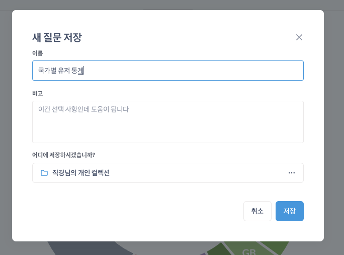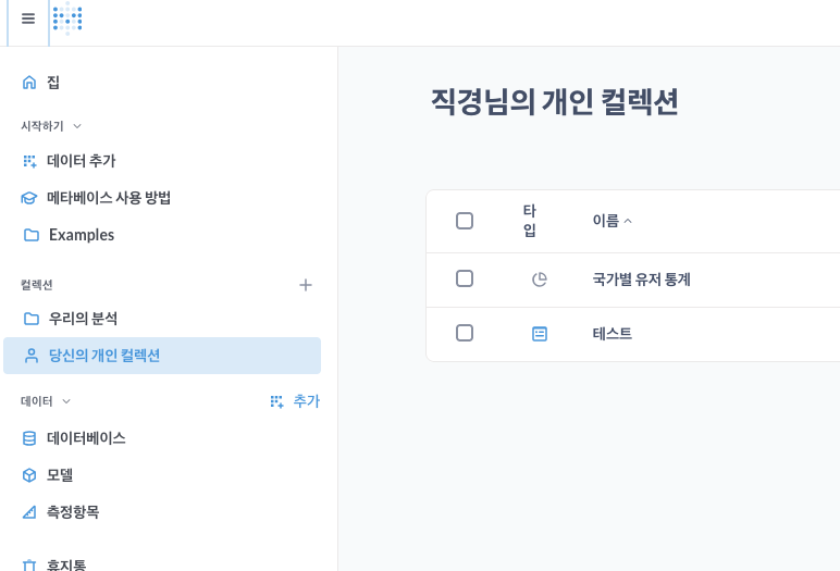 metabase에서는 개별 차트 단위를 컬렉션이라고 부른다.