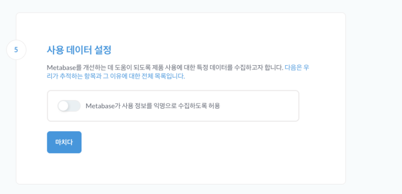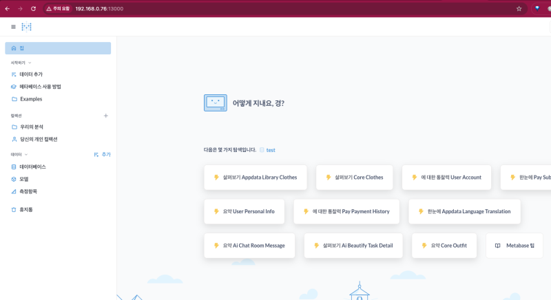 metabase는 데이터베이스를 통해서 상태를 저장하는데, 따로 옵션을 주지 않으면 인메모리 데이터베이스인 H2를 사용하기 때문이다. 그래서 재시작하면 데이터 증발한다...