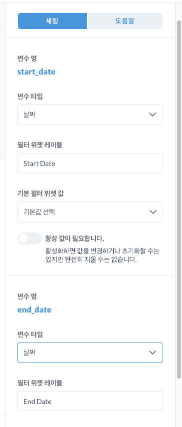 변수와 필터 추가