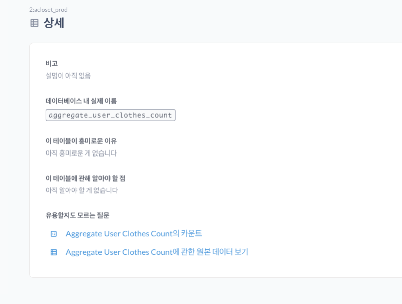 데이터를 보는 용도는 아니고, 테이블에 대한 설명 같은걸 추가로 적을 수 있는 공간이다.