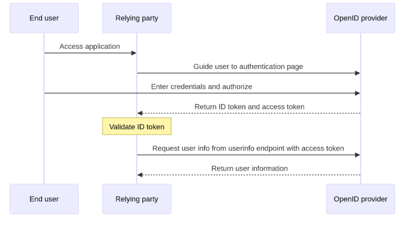 OpenID๋ ํด๋น ์ฌ์ฉ์๊ฐ ๋ง๋์ง๋ฅผ ๊ฒ์ฆํ๋ ์ญํ ์ ํ๋ค. ํธ์ํฐ์ SSO ๋ก๊ทธ์ธ์ ํ์๋, ํ์ฌ์๊ฒ ์ด ์ฌ์ฉ์๊ฐ ํธ์ํฐ์ "john.doe"๊ฐ ๋ง๋ค๋ ๊ฒ์ ํ์ธํ๋ ๊ฒ ์์ฒด๊ฐ OpenID์ธ ์