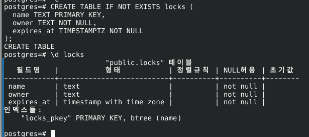 여기서는 PostgreSQL를 사용해서 분산 락을 구현해보는 방법을 간단히 정리해본다.