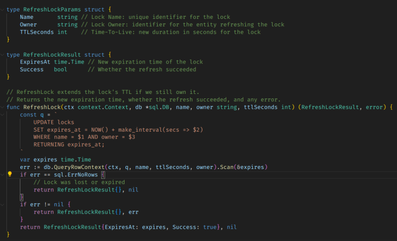 하지만 실행 흐름이 길어서 Lock TTL이 정상적인 상황에서도 초과할 수 있다면, Refresh를 날려서 Lock을 연장하는 것이 필요할 수도 있다.