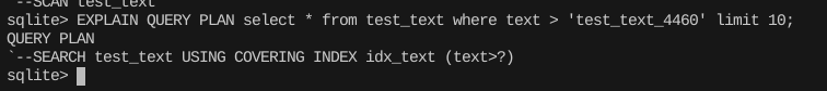 SQLite는 PostgreSQL 같은 주요 DB들에 비하면 인덱스 활용 수준이 제한적인 편이다.